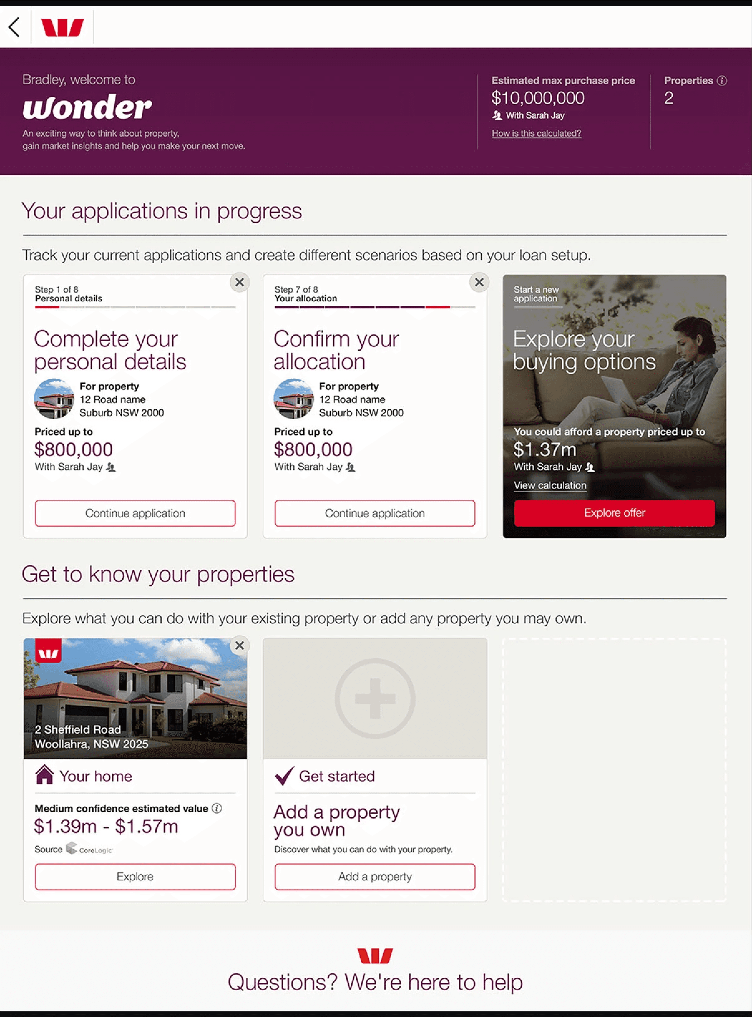 Competitive differentiation: Build a property platform that gave Westpac an edge over rival banks, by positioning clarity and transparency as part of the value proposition.